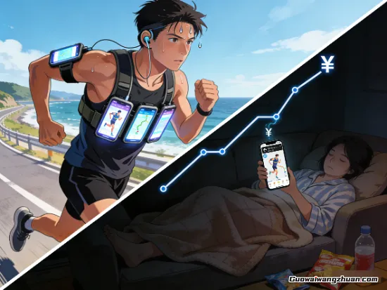 在某个城市的大学城附近,有一个代跑工作室。几个精瘦的、皮肤黝黑的小伙子,一人拿着好几部手机。接到订单后,他们把手机绑在臂包上,冲出宿舍,在操场上一圈一圈地跑。